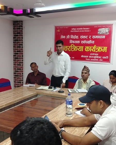 नेकपा बाँकेले शनिबार कोहलपुरमा आयोजना गरेको ‘जेनजी विद्रोह, संकट र समाधान’ विषयक अन्तरक्रिया कार्यक्रमलाई सम्वोधन गर्दै नेता असलले समाजवाद भन्दा अग्रगामी निकास अर्को बाटो नभएको भन्दै सर्वपक्षिय सरकार र संविधानको पूर्नलेखन गरेर जानु पर्ने बताए ।
